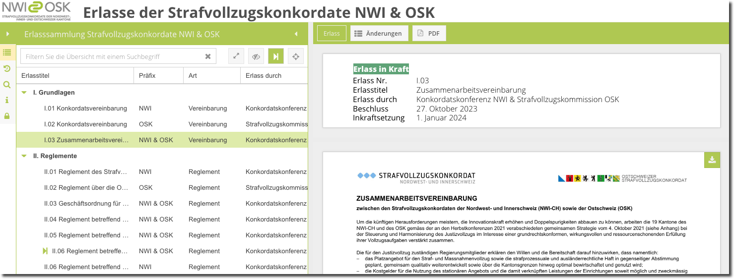 Gemeinsame Erlasssammlung der beiden Strafvollzugskonkordate NWI und OSK als Ausfluss der etablierten Zusammenarbeit