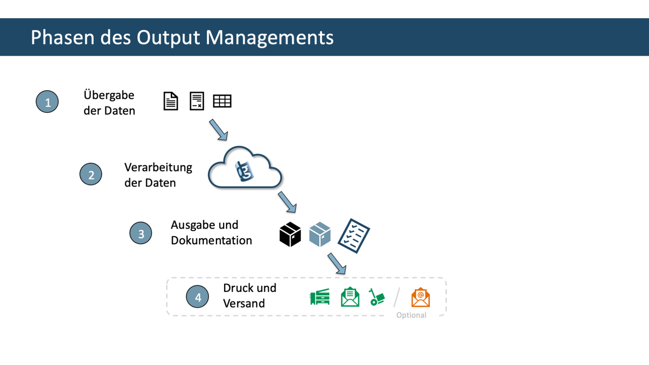 Denn mit der Übergabe Ihrer Daten an uns ist Ihre Arbeit bereits erledigt, alle weiteren Arbeiten (wie beispielsweise Druck, Kuvertierung, Frankierung sowie Postaufgabe) werden vom Output Management für Sie übernommen. Sie möchten Ihre Dokumente „nur“ individuell pro Kunde per E-Mail versendet haben? Auch dafür haben wir eine Lösung!