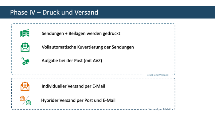- Sofern Sie sich für den Druck und Versand durch unser Partner Unternehmen entscheiden, kümmert sich dieser vollständig um Druck, Kuvertierung und Postaufgabe Ihrer Sendungen.