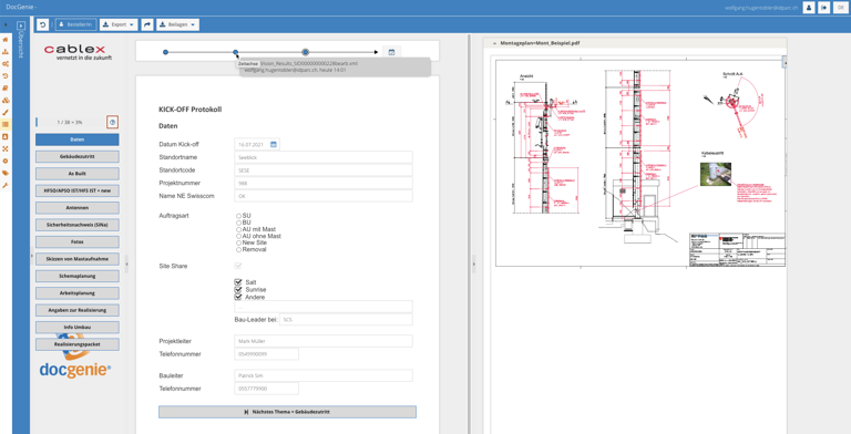 Mit der Enterprise Lösung auf Basis von DocGenie® bewirtschaftet Cablex Projektdokumente standardisiert und automatisiert. Unterschiedlichste Geschäftsfälle aus verschiedenen Abteilungen wurden mit Proof-of-Concepts erfolgreich getestet, wobei diese bereits von Cablex-Personal entwickelt wurden.