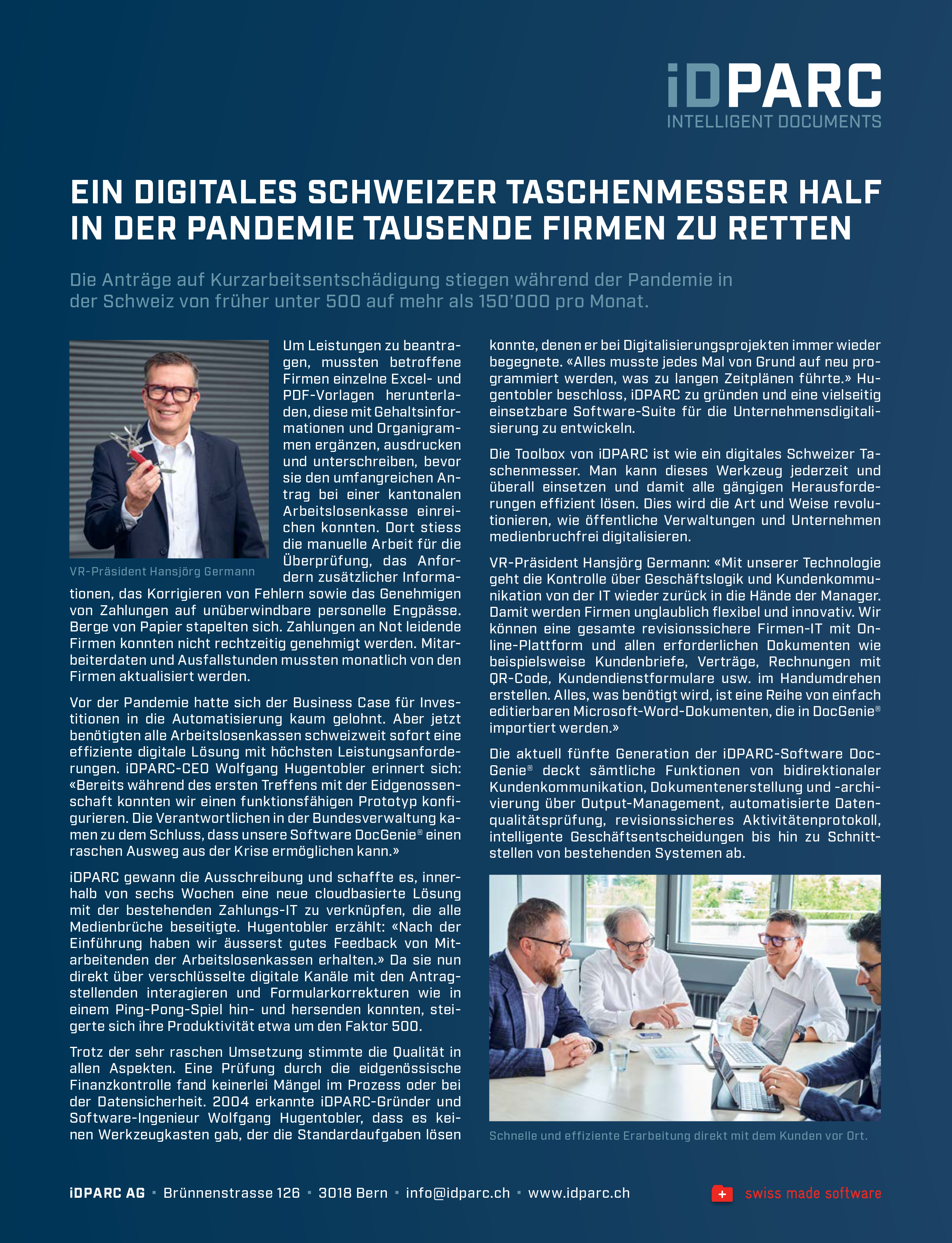 Lesen Sie die im deutschsprachigen Forbes Magazin (Ausgabe 07/23) veröffentliche Story über uns, wie wir mit unserem "digitalen Schweizer Taschenmesser" das Überleben tausender Schweizer Firmen sichergestellt haben.